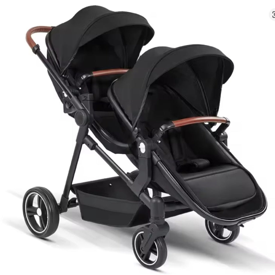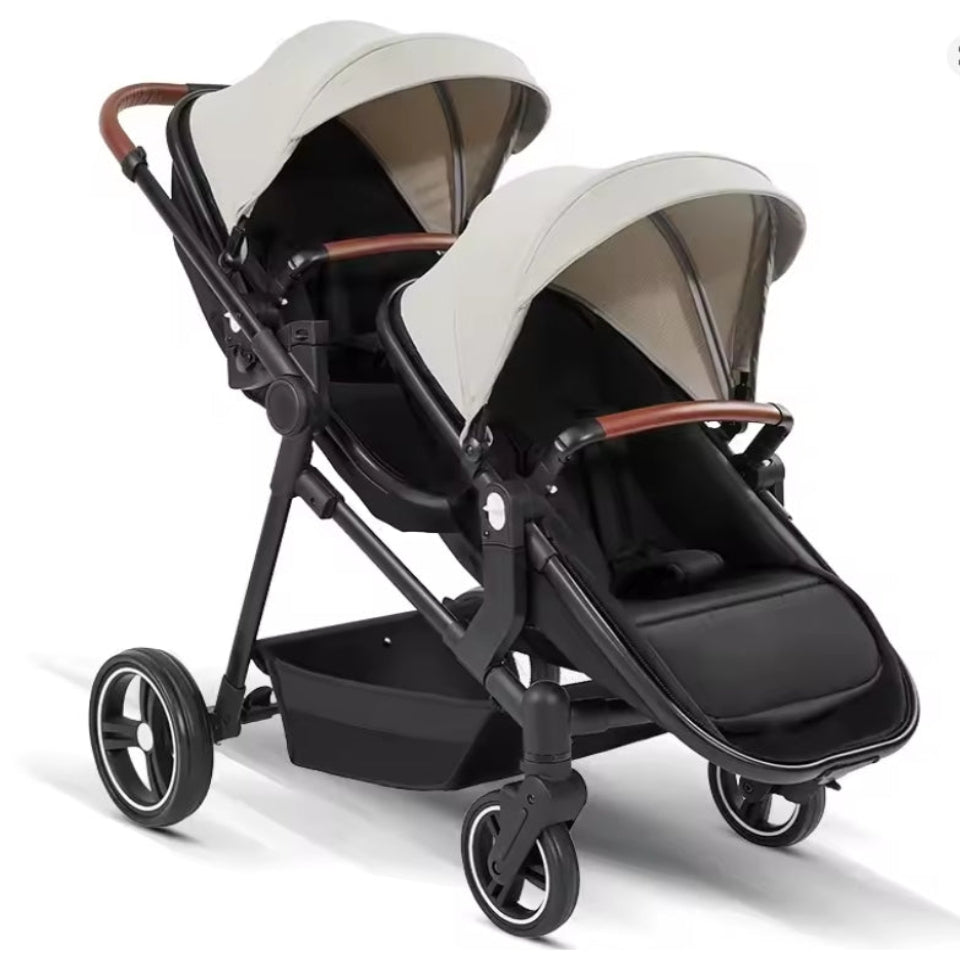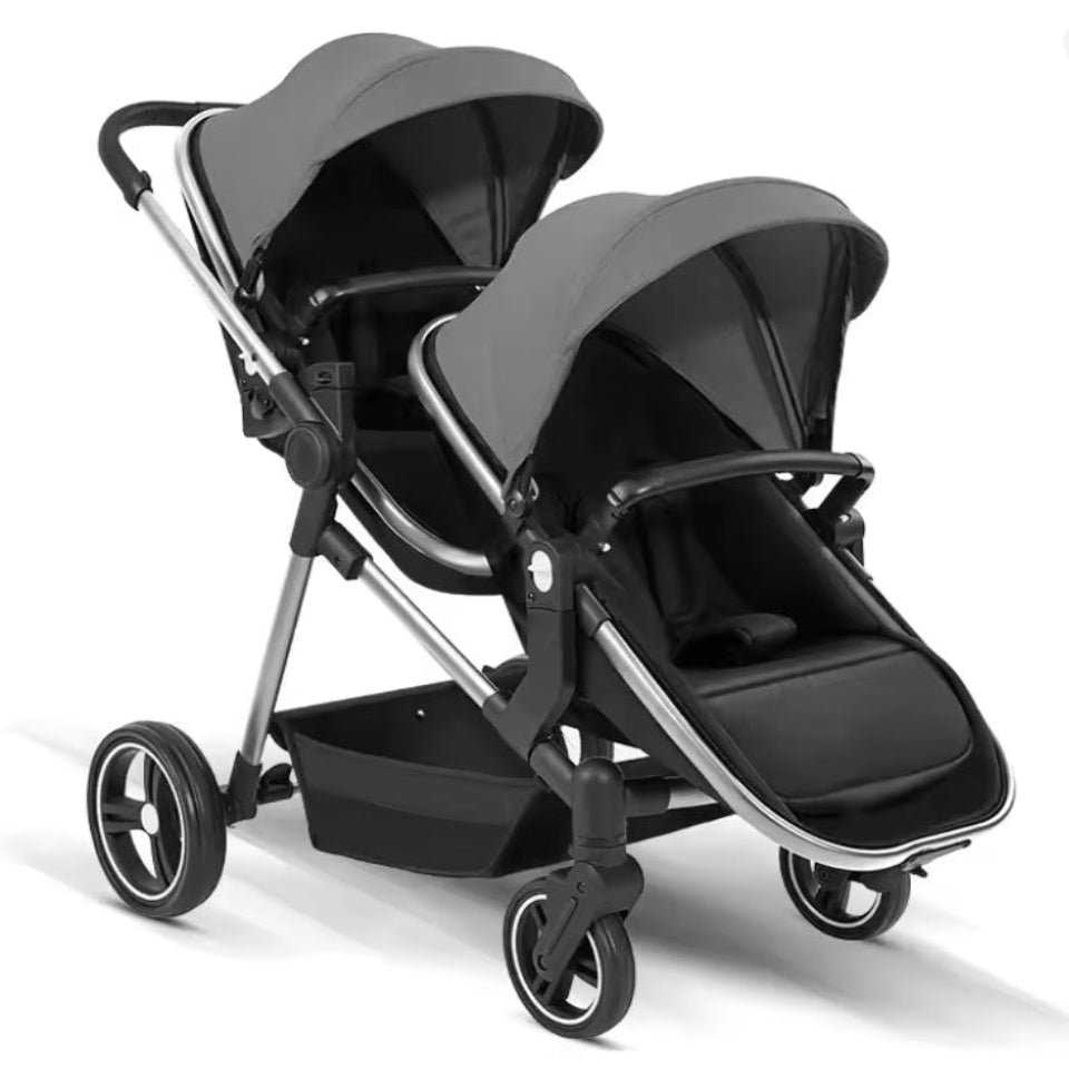 Poussette double modulable adaptée de la naissance jusqu’à 3 ans. Conçue pour deux enfants, elle offre plusieurs configurations : côte à côte, en ligne ou face à face.