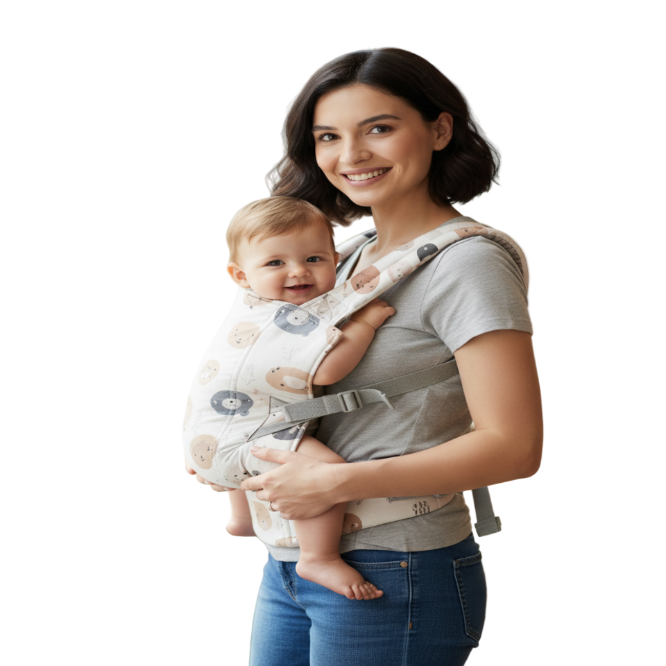 Porte-bébé pliable en polyester, léger et pratique pour un usage quotidien. Convient aux enfants de la naissance jusqu’à 3 ans (15 kg max).